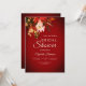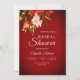 Elementos florais de aquarela em lindas cores de outono, colocados sobre uma rica canvas vermelha de outono e terminados com caligrafia de marfim. O resultado é uma bela matriz de design adequada para os motivos casuais e mais elegantes dos chás de panela. A solicitação de RSVP e as informações são encontradas na parte traseira do convite, salvando a despesa adicional de uma inserção de RSVP separada. Par com produtos correspondentes, para uma suite de casamento completa.