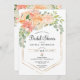 Este belo Chá de panela Peach Floral Bonito apresenta uma estrutura geométrica de ouro moderna e um buquê de rosas e peônias de cor de pêssego. Personalize facilmente este design com as suas informações de eventos. Você pode até personalizar isso mais clicando no link 'personalizar mais'! Veja toda a nossa coleção de Peach Bonito para mais itens correspondentes!