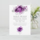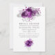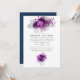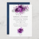 Rosas roxos de ameixa escura e convites de chá de panela folhosos tropicais com brilho prateado com lavagem de cor azul marinho à água.