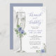 Este bonito design apresenta um buquê floral em tons de azul e um copo de champanhe de aquarela. Preencha suas informações sobre o modelo. Use o recurso "personalizar" para alterar as fontes ou o layout.
