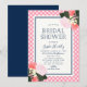 Elegante Chá de panela Floral, com rosas cor-de-rosa, corais e flores amarelas, e folhas verdes com um centro esbranquiçado e bordas azuis contra um doce fundo cor-de-rosa de-gingham na frente. O convite tem um lado azul nas costas. Confira a correspondência e outros itens de chá de panela/casamento aqui https://www.zazzle.com/rosewoodandcitrus/gifts?cg=196540141241316965&rf=238364477188679314 Personalize este convite com seus detalhes substituindo o texto do marcador de posição. Para obter mais opções, como alterar a fonte, o tamanho/cor do texto, o espaçamento entre letras ou para contrair ou expandir o texto curvo, clique no botão "Personalizar". *Observe que a Marca d'água do Zazzle que aparece na visualização de zoom NÃO aparecerá no produto impresso final. © Rosewood e Citrus