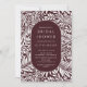 Padrão de folha e flor moderno com um na moda oval que enquadra suas informações de festa em vinho e branco.
