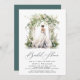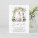 O Chá de panela elegante apresenta o roteiro de caligrafia '' chá de panela'' em letras manuscritas de tendências, portão de arco de aquarela com flores, folhagem verde e noiva em vestido de noiva. Personalize com um nome e detalhes.