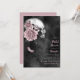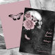 Bela escuridão e humor este convite para chás de panela é perfeito para aqueles que amam gótico e Halloween. O crânio com rosas e borboletas no topo de um fundo de aquarela preta pôs a vibração. A tipografia da escrita em apuros acrescenta à aparência. Veja a coordenação de itens no nosso compro, Encantado Finch.