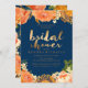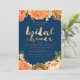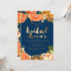 Chá de panela floral Dourado e laranja. Criado com flores laranja vibrantes com acentos de folha de ouro falso sobre um fundo do marinho que pode ser alterado para qualquer cor que você preferir usando a ferramenta "personalizar" no zazzle. Este Chá de panela floral moderno será uma bela introdução ao seu casamento especial. Outros materiais de coordenação de casamento floral estão disponíveis no MetroEvents em Zazzle. Projetado por Metro-Events.com