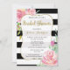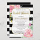 Estes convites de chá de panela elegantes apresentam listras negras e brancas modernas com belos rosas de aquarela e flores invocando uma sensação bonito de safra. O texto é enquadrado por uma folha de ouro falsa com fundo branco. O texto "Chá de panela" também é feito no estilo bonito faux gold foil. A combinação perfeita dos modernos e tradicionais! Amigos e familiares amarão a elegância simples e moderna deste cartão. Parece especialmente luxo com as opções de papel "colchete" e "Luxe Pearl Shimmer". ©2016 Casamentos*n*Whimsy: compro de coordenação de pontos (e contacte-me se precisar de algo mais criado a coordenar!) ©2016