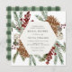 Chá de panela com um quadro de florais de inverno e vergreens com fundo clássico de xadrez de búfalo verde. Estes convites de moda são perfeitos para um chá de panela rústico. Personalize com suas informações para que a noiva seja. Clique em "clicar para personalizar mais" para alterar o estilo, o tamanho ou a cor da fonte.