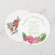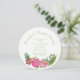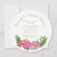 Chá de panela exclusivo feito em estoque de cartão redondo e fundo branco. Gráficos de pequenas bolinhas verdes correm ao redor da borda externa e trabalho de arte de bonito aquarela de flores de pénia rosa e coral decoram o fundo. Personalize o texto verde colorido do seu evento nobre. Estão disponíveis guardanapos, pratos e xícaras de papel de coordenação.