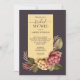 Flores impermeáveis cor-de-água, cor-de-rosa e douradas, com belos verdes verdes sobre fundo castanho roxo escuro, e a sua redação em caracteres quicos sobre fundo dourado. Perfeito para convites de chá de panela de noivado brunch e bubble ou qualquer ocasião especial, basta mudar a redação. CORRESPONDENDO a itens na nossa loja.