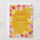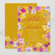 Celebre o amor com este chá de panela floral único pintado à mão. A design boho-moderna apresenta tons vibrantes de roxo, verde, lavanda e amarelo, criando uma atmosfera ousada e alegre na paisagem da mostarda. As flores soltas de aquarela adicionam um toque de cinza, enquanto o falso confete de ouro brilhante traz um toque de glamour. A moderna e elegante fonte de tipografia de script adiciona um elemento sofisticado e na moda ao convite. Perfeito para uma celebração inspirada na boêmia, este convite original ilustrado à mão dá o tom para um evento alegre e memorável.