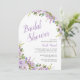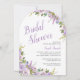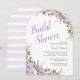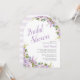 convites de chá de panela impressos personalizados do barato. Este bonito design feminino tem uma borda floral de cor d'água com flores roxas pastel e verde. Personalize o design com os detalhes do seu chá de panela. O verso tem um padrão de faixa de aquarela roxa ou use o espaço para adicionar texto e fotos adicionais. Clique em Personalizar para escolher qualquer cor de fundo e editar as fontes de texto e as cores para criar um único convite de primavera ou chá de casamento de verão.