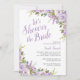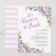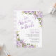 convites de chá de panela impressos personalizados do barato. Este bonito design feminino tem uma borda floral de cor d'água com flores roxas pastel e verde. Personalize o design com os detalhes do seu chá de panela. O verso tem um padrão de faixa de aquarela roxa ou use o espaço para adicionar texto e fotos adicionais. Clique em Personalizar para escolher qualquer cor de fundo e editar as fontes de texto e as cores para criar um único convite de primavera ou chá de casamento de verão.