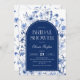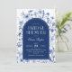 Chá de panela de flor selvagem em azul marinho e branco. Belo design elegante com sotaques botânicos pintados à mão. Possui flores silvestres de cor aquática delicada, arco de tendências e letra de script de tipografia. Você pode escolher convites impressos e/ou fazer o download instantâneo do modelo digital. Perfeito para um chá de panela na moda.