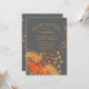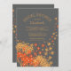 Belo Chá de panela de flores do outono, com flores amarelas e laranja de ouro na moda e gicas, colocado sobre um fundo de cor de cinza bonito. Sacudir o nosso convite para o chá de casamento de tendências para ver uma coordenação popular de volta para um toque especial extra.