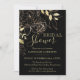 Convite Chá de panela Floral Moderno de Peony Preto e Dour