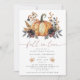 Este design apresenta uma elegante abóbora aquarela cercada por florais e folhagem de queda escura. Perfeito para chás de panela de outono.