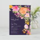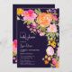 Celebrar a noiva a ser com o nosso Chá de panela de Verão Floral Romântico Rosa, uma espetacular mostra de flores pintadas à mão em tons de rosa, laranja e roxo, acentuadas por uma exuberante vegetação. Este convite exude romance e charme, definindo o tom perfeito para um chá de panela memorável. A fonte moderna do script de pincel adiciona um toque de sofisticação, enquanto a cor de fundo editável permite que você personalize o convite para corresponder ao seu tema sem problemas. Com seu belo e original design, este convite promete encantar convidados e honrar a ocasião especial em estilo em um editável fundo roxo escuro.