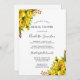 As rosas amarelas criam uma bela fronteira neste convite à noiva. Um quadro de brilho dourado adiciona ao estilo.