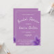 Flores Roxas Modernas Rodam Chá de panela Floral. Chá de panela floral com flores roxas e guião branco moderno sobre fundo roxo. Altere os detalhes do cartão com o seu. Este convite personalizável é excelente para um chá de panela rústico, floral e country.