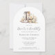 Vamos se reúne para Boots & Bubbles e comemora a noiva-a-ser! Um chá de panela rústico, mas elegante e elegante para uma noiva que gosta de andar! Apresentando uma elegante ilustração de aquarela de botas brancas de cowboy e peões brancos. Roteiro sofisticado de caligrafia para o título do evento e um padrão floral romântico de peões no verso. Este chá de panela em forma de arco de país é totalmente personalizável, você também pode usá-lo para qualquer outro evento. Use apenas a ferramenta design para personalizar este cartão de convite para ajustado das suas necessidades.
