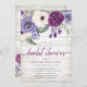 Este chá de panela floral rústico apresenta um toque de elegância com a moderna fonte do script de caligrafia. Lindas flores roxas e lavandas de aquarela com vegetação silvestre decoram o fundo do celeiro.