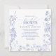 Convite Chá de panela Floral Vitoriano Azul e Branco