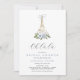 Oh là là Paris Chá de panela francês Blue Eiffel Convite apresenta ouro Torre Eiffel com arco azul no topo e flores azuis com verde. Trás do convite tem listras azuis de bebê. Envie-me uma mensagem para todos os ajustes necessários ou itens correspondentes.