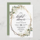 Este é um belo chá de panela de casamento com magnólia e design de moldura geométrica dourada. Um plano de fundo correspondente com cor sólida está incluído.