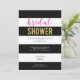 Convite Chá de panela Glitter Hot Pink Black Strips