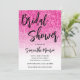 Design de bloco de cores rosa quente e branco com gradiente de brilho para o seu chá de panela. A letra do script "Chá de panela" do estilo de letra de mão é uma caligrafia contemporânea adorável em branco. Você pode personalizar todo o texto neste design. O gráfico brilhante é a arte digital que impressão como uma foto no seu convite moderno.