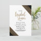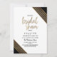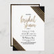 Um moderno branco de luxo, azul-marinho e ouro inclui um elegante e versátil ouro, branco e design geométrico azul-marinho com tipografia prateada escrita à mão. Este Chá de panela de casamento é o impressão perfeito para qualquer evento de casamento de noiva e noiva. Personalize este design com seus detalhes e monograma inicial.