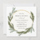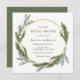 O Elegante convite para chá no tema Winter apresenta um quadro de ouro rodeado por cor d'água evergreen e pinho. Personalize com suas informações ou clique em "Clique para personalizar mais" para editar estilos de fonte, tamanho e cores.
