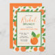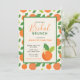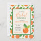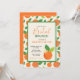 Um convite brilhante e alegre, com um design floral cor de laranja. Excelente para chá de panela, almoço ou lanche. Capaz de personalizar com detalhes do evento. As cores desta ilustração desenhada à mão incluem laranja, verde, amarelo, chartreuse e creme.
