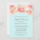 convites de chá de panela personalizados em azul-bebê pastel com bonito flores cor-de-água cor rosa-claro-azul-claro.