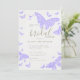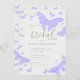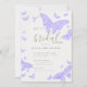 Modelo moderno, na moda, romântico de chá de panela com tema de borboleta, com quadro de feitiço e borboletas pintadas manualmente, aquarela em lilás e borboleta de ouro (é um efeito digital, não uma folha real). Romântica e elegante, na moda e chic, vai apelar à noiva e ao noivo modernos que querem uma atmosfera refinada mas relaxada, talvez no campo, num jardim ou outro lugar onde a natureza tem um papel importante.