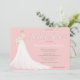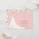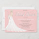 Chá de panela apresenta noiva loura linda de vestido branco de vestido de noiva e um padrão floral rosa rosa e rosa rosa rosa rosa rosa branco atrás.