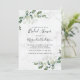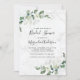 Convide amigos e família a honrarem a noiva a ser com este Chá de panela barato com folhas de cor aquática de eucalipto contra fundo de mármore.