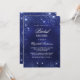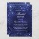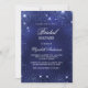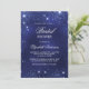 Um convite moderno, na moda, glamouroso para um Chá de panela. Um fundo azul marinho, decorado com faíscas de brilho. A cor azul é irregular. Personalize e adicione um nome e detalhes da parte.
