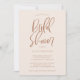 Chá de panela moderno minimalista com fonte de script boho. Pincel de fundo cor-de-rosa com textos de terracota.