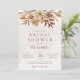 Convites de chá de panela modernos do estilo boêmico com flores aquáticas e folhas de outono em tons sujos como marrom-ferrugem, laranja queimado e terracota. Escolha perfeita para casamentos no outono.