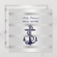 Âncora azul Marinho náutica Elegante, fundo branco-prateado - acessórios de festa limpas, elegantes, chic e personalizáveis para na moda com fundo branco com faixas de gradiente prateadas e uma âncora azul-marinho centrada. Este produto faz parte de um conjunto de designs correspondentes que são facilmente personalizáveis para muitas ocasiões e eventos. Se você precisar de placas RSVP separadas, Obrigado, notas, carimbos, ímanes, etiquetas de garrafas, menus, cartões de escolta, programas de eventos, etiquetas de favorecimento ou outros acessórios, por favor, verifique nossas outras listas. Se você não vir um produto correspondente ao qual você está interessado, ou gostaria de ver este design em cores diferentes, por favor entre em contato conosco e ficaremos felizes em acomodá-lo. Observe que esta é uma design gráfica / foto que é transferida para o produto subjacente e não contém tecidos, fita, metais, gravura, joias ou gravuras reais. 2013 ©TheMyPartyDesigns Todos os direitos reservados