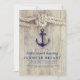 Convites de chá de panela náuticos com âncora azul marinho, corda marinha e fundo de madeira derivada.