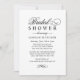 O design de chá de panela de casamento branco e preto apresenta uma bela tipografia que combina um tradicional roteiro de caligrafia florescida com a letra clássica de blocos em um fundo branco limpo. Inclui um sotaque de design de rolagem decorativo. O texto personalizado pode ser totalmente personalizado para a ocasião especial da noiva. Por favor, compre nossa Coleção de Casamentos Brancos e Pretos Elegantes Clássicos para coordenar designs.