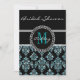 Rapariga, Convites de chá de panela com Cor damasco preta com efeito fotográfico azul lacrimogêneo impresso. Personalize com seu nome e seu monograma inicial. Design por Elke Clarke ©. Gráficos licenciados para uso. Um chá de panela excelente para a noiva ser.