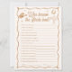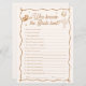 Faça sua celebração inesquecível com nosso Chá de panela Ocidental Personalizado que Conhece o Melhor Jogo da Noiva. Perfeito para botas e ideias de chás de panela espumantes, esta atividade divertida é uma obrigação para qualquer pessoa que procura por ideias únicas de chá de panela ocidental. Excelente por ideias de chás de panela do país e ideias de chá de panela de vô, este jogo adiciona uma reviravolta divertida à sua festa. Quer você esteja hospedando um chá de panela clássico do país ou planejando as ideias mais modernas de chá de panela de cowgirl, este jogo manterá os convidados entretidos!