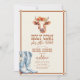 Santa Vaca, ela está pegando chá de panela. As botas de vaqueira têm flores bonito e margaridas e como as flores estão na cabeça - tão adoráveis! Uma caligrafia incrível aumenta a vibração ocidental. O fundo é um papel aquoso falso em uma cor cremosa que realmente faz o design pop. Que design maravilhosa para o seu próximo chá de panela. Veja a coordenação de itens no nosso compro, Encantado Finch.