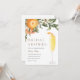 Chá de panela com buquê de cor d'água de laranjas e verde com champanhe de laranja mimosa. Personalize com suas informações ou clique em "Clique para personalizar mais" para editar estilos de fonte, tamanho e cores.