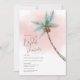 Celebrar a noiva com este chá de panela temático da praia que apresenta uma ilustração aquática de uma palmeira e do céu cor-de-rosa.