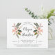 O chá de panela chic apresenta o nome da noiva em um roteiro elegante de caligrafia, enquadrado por pêssego e flores cor-de-rosa, botões e verde. Personalize com os detalhes do seu chá de panela abaixo.