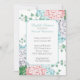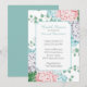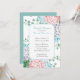 chá de panela Bonito, com gráficos de hortênsias cor-de-rosa, azuis e brancas pastel e marinheiro verde, sobre um fundo branco. A área de texto branco de borda azul de um pino, no meio, tem texto personalizado pronto para personalizar.